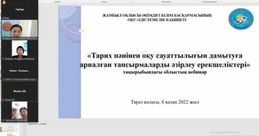 «Тарих пәнінен оқу сауаттылығын дамытуға арналған тапсырмаларды әзірлеу ерекшеліктері» тақырыбында облыстық вебинар өтті